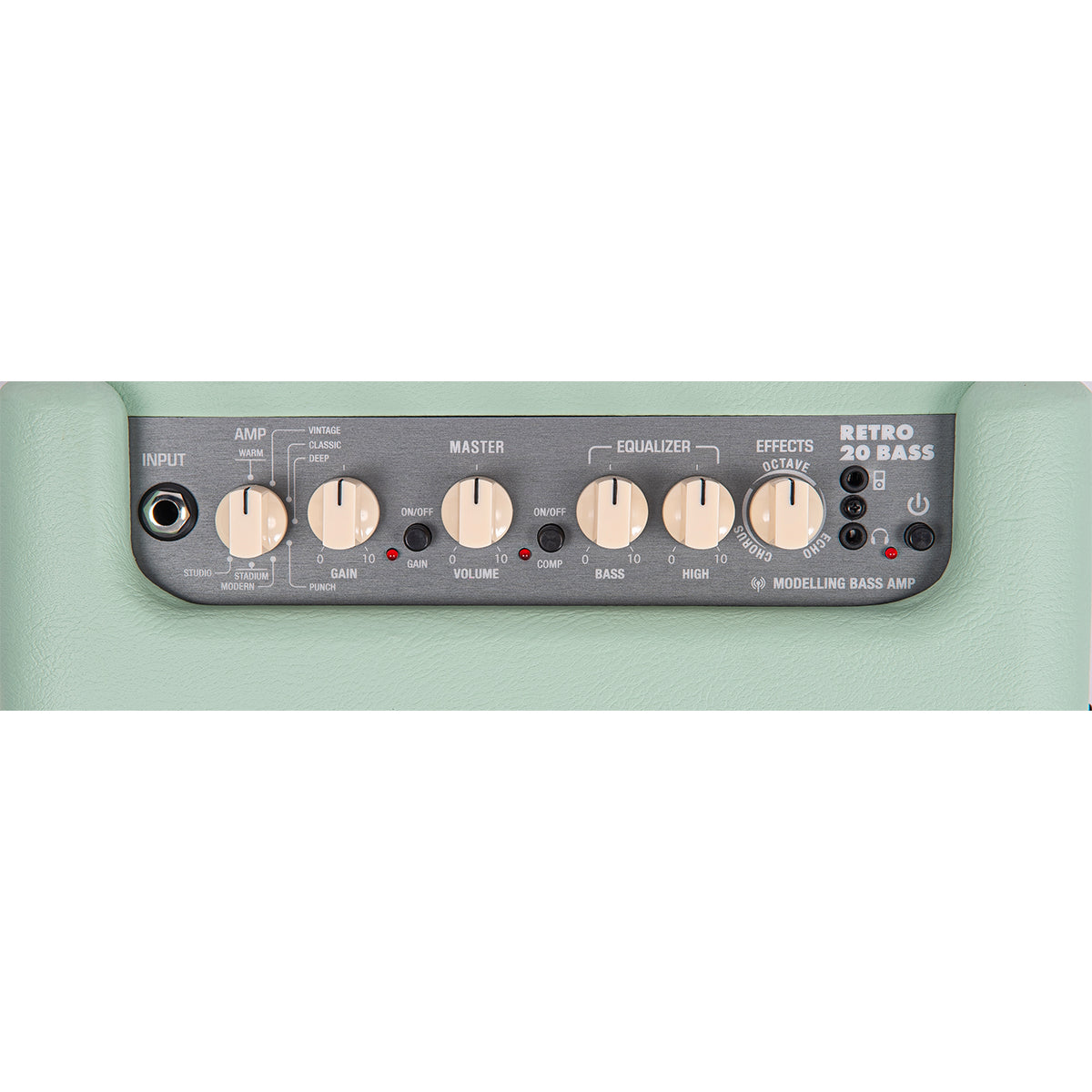 The Vintage Retro 20 Bass Amplifier delivers classic style with modern versatility. Packing 20 watts of max power and a built-in speaker, this compact amp is perfect for practice, rehearsal, or small performances. With 3 onboard effects—chorus, octave, and echo—plus 8 simulated amp sounds, it gives you a wide palette of tones to explore.