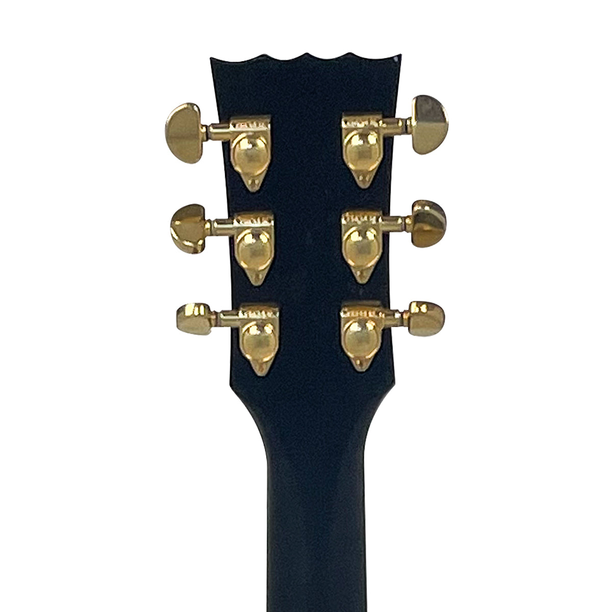 Two piece centre jointed mahogany body, with carved solid maple cap and bookmatched flame maple veneer provides resonance, tone and ‘correct weight’ comfort. The Vintage V100 features a unique, evolutionary body shape, with a graceful descending bass side shoulder and an ingeniously-designed offset heel providing improved access to the upper reaches of the fretboard.