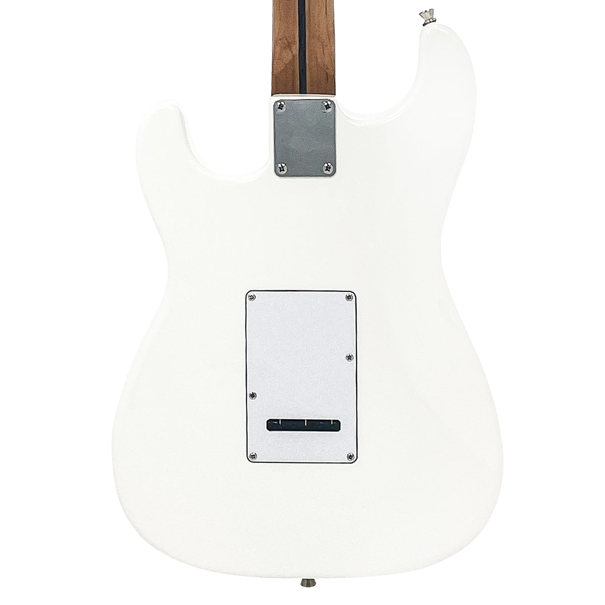Wilkinson WJ55 patented E-Z-Lok machine heads. Simple, effective locking action for increased tuning stability. Staggered string post heights provide correct string rake angle for smooth vibrato action and correct playing tension.