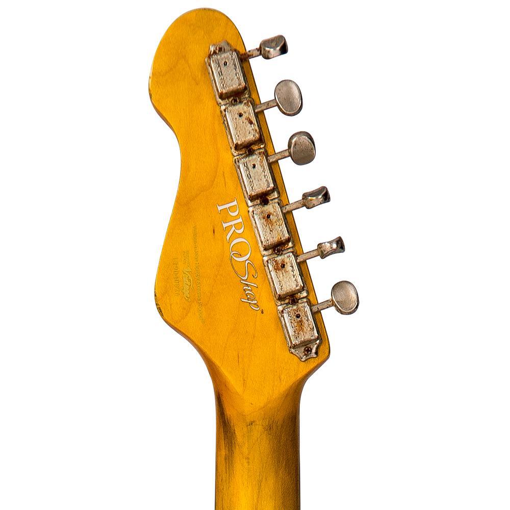 The neck itself is a thing of beauty, sleek, fast and carefully aged, and for that unmistakable killer look, along with the headstock is given a cellulose amber coating. The vintage charm is enhanced further with pickup covers, scratchplate and controls also receiving subtle shading to blend into the pre-worn picture.